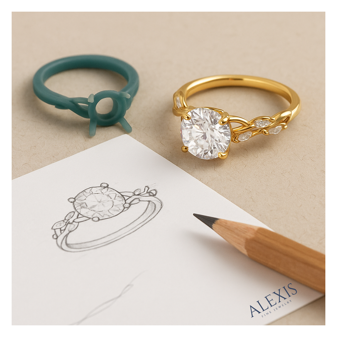 אצלנו ב״אלכסיס״ הטבעת שלה מיוצרת מאפס, החל מהיהלום ועד לעיצוב הטבעת שתמיד חלמה עליה.
