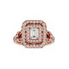 טבעת אירוסין יוקרתית מזהב משובצת 66 יהלומים קטנים ויהלום בחיתוך רדיאנט במרכזה.